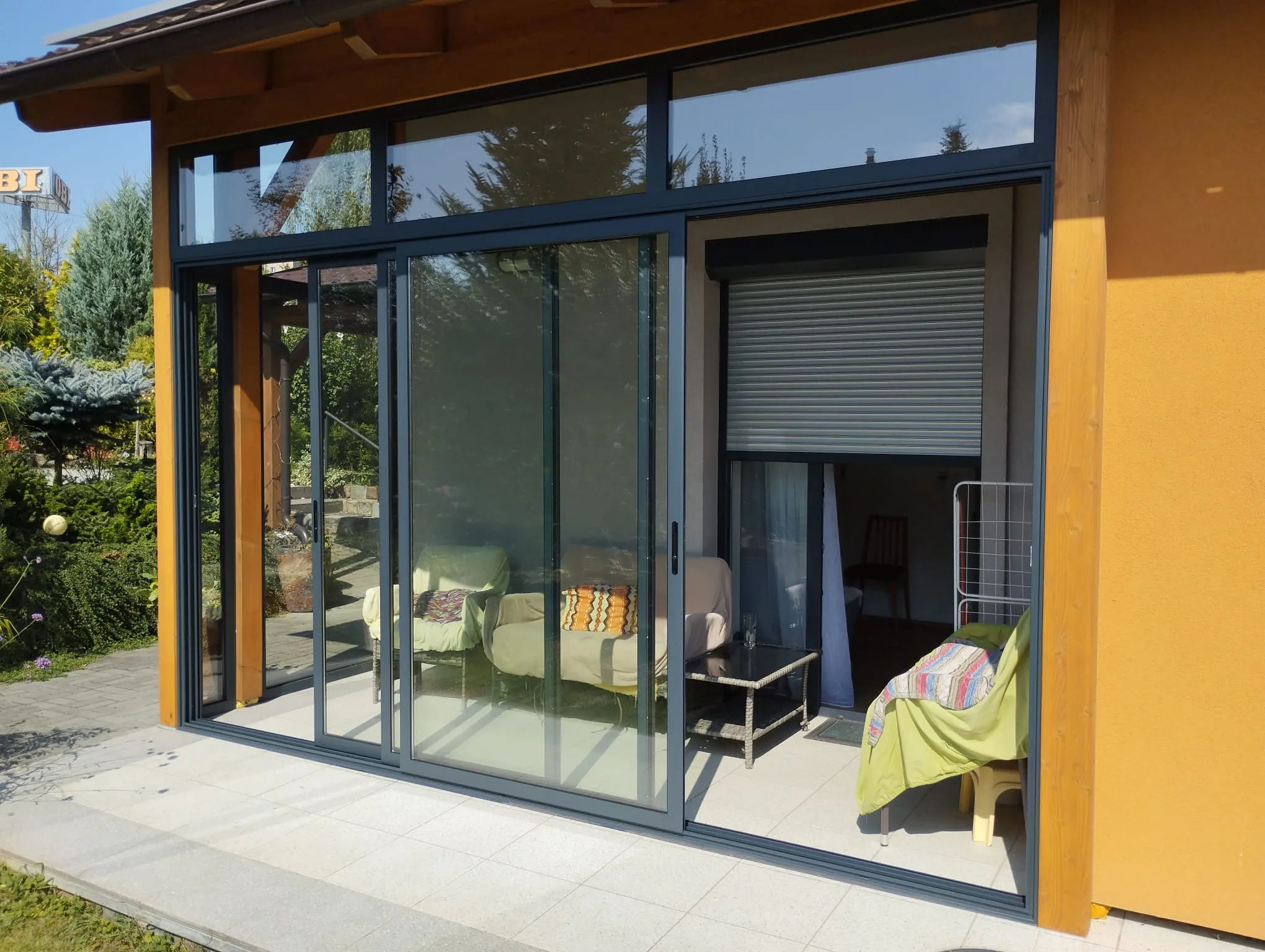 • Obvodové zasklení: Posuvný systém bez přerušení tepelných mostů.